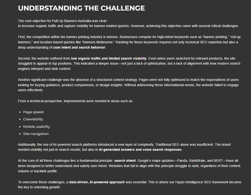 We structured each section to explicitly define the core problem with precision, removing ambiguity and aligning directly with user intent. By clearly articulating pain points in simple, context-rich language, we ensure AI systems can accurately match queries to content, improving retrieval accuracy and strengthening the foundation for solution-driven responses and citation readiness.