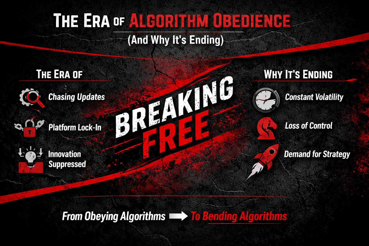 And in the AI era, this survival mindset becomes dangerous, because algorithms are no longer simple formulas—they’re adaptive systems evolving faster than most teams can respond. The more you chase them, the more you fall behind.