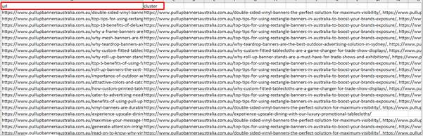 Users provide a CSV with each page URL and its corresponding cluster. This serves as the foundation for generating the internal link graph.