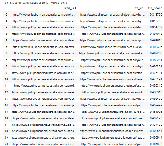- missing_link_suggestions.csv — page→page suggestions with similarity scores.