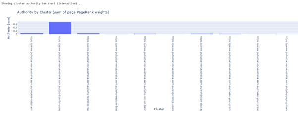 While individual PageRank scores show page-level authority, the Cluster Authority Table aggregates these values across all pages within a cluster. This reveals which clusters dominate authority and which are underperforming. For instance, a blog cluster on “SEO Techniques” might sum to a higher authority than a cluster on “Content Marketing Tools,” indicating where internal linking and content expansion could be prioritized. By examining cluster-level authority, site owners can make informed decisions about strengthening weaker clusters to maintain balanced topical coverage.