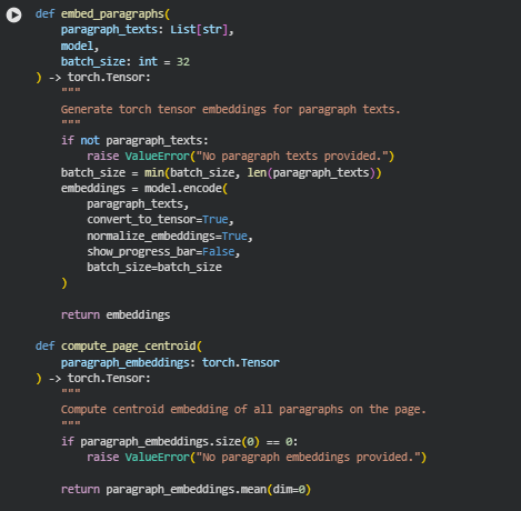This project addresses that limitation by isolating individual sections and paragraphs and evaluating their semantic contribution independently. This approach makes it possible to understand how relevance is distributed across the page, identify areas where relevance is concentrated, and detect sections that do not meaningfully support the page’s intended topic. The result is a more accurate and actionable understanding of content performance.