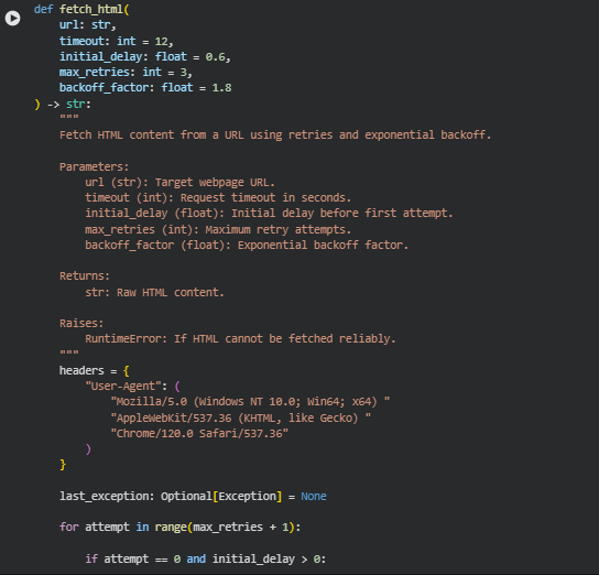 In this project, requests is used to fetch webpage content from URLs provided as input. Reliable content retrieval is a foundational step, as all downstream analysis depends on accurately extracted page text.