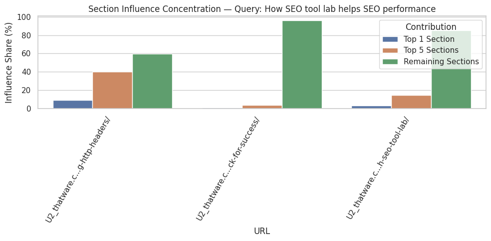 What it shows: Illustrates how influence is concentrated within the top sections of a page. It quantifies the percentage of overall influence held by the top 1 section, top N sections, and the remaining sections.