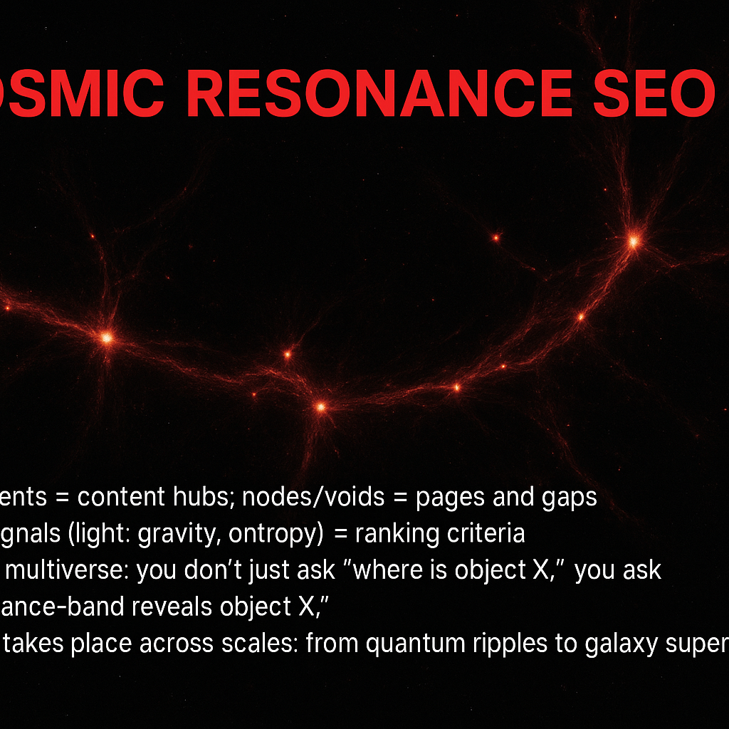 In short: by treating the cosmos as a searchable network — with the cosmic web as signal-topology and quantum multiverse branching as content-generation — we step into a new paradigm of cosmic discovery. And just as SEO once transformed websites into discoverable nodes, Quantum Multiverse SEO transforms universes into query-responders. The universe is no longer passive; it becomes searchable, indexable, optimisable.