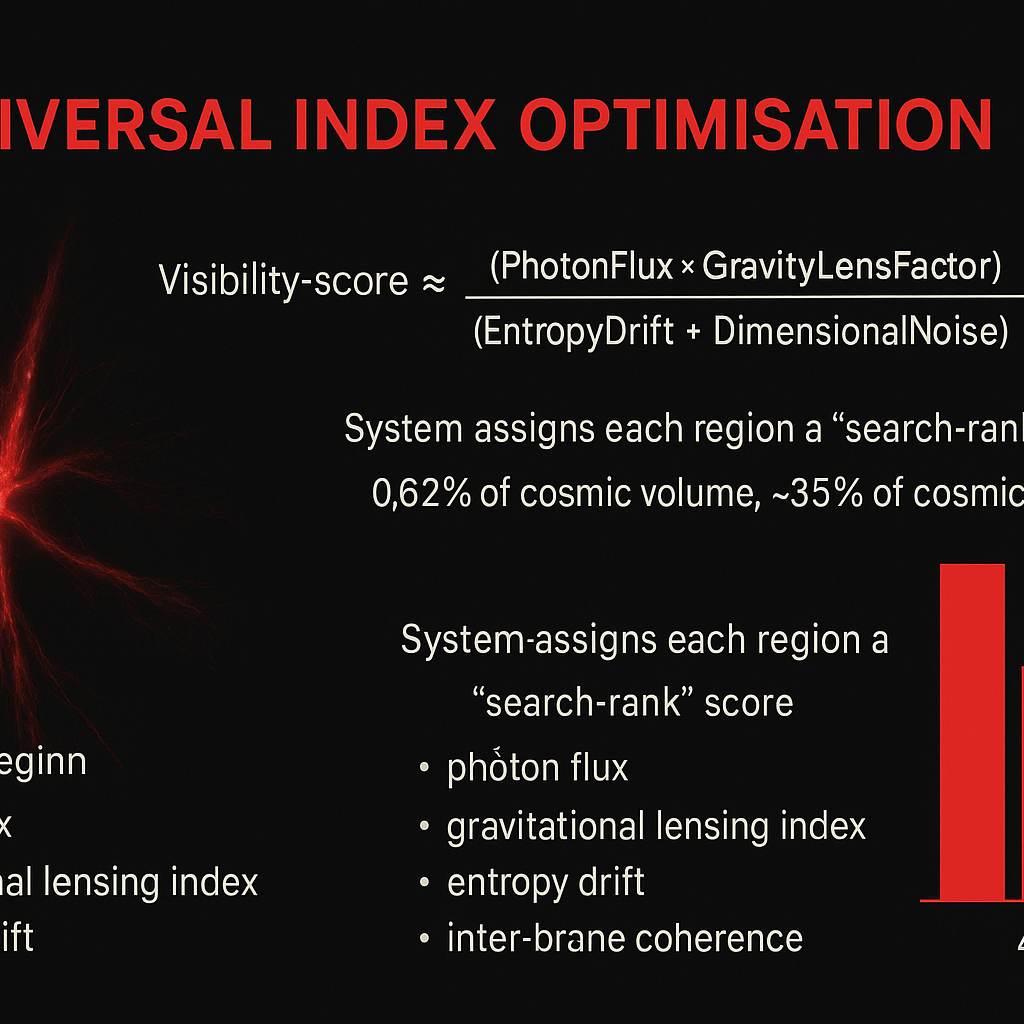 In the architecture of the cosmos, Universal Index Optimisation is the discipline through which our hypothetical system—let’s call it “THE SEARCH-ENGINE of Being”—organises and queries vast domains of cosmic data, from quantum fluctuations to galactic filaments. It asks: how can the universe itself become a searchable index, and what parameters must be optimised for visibility across scales and dimensions?