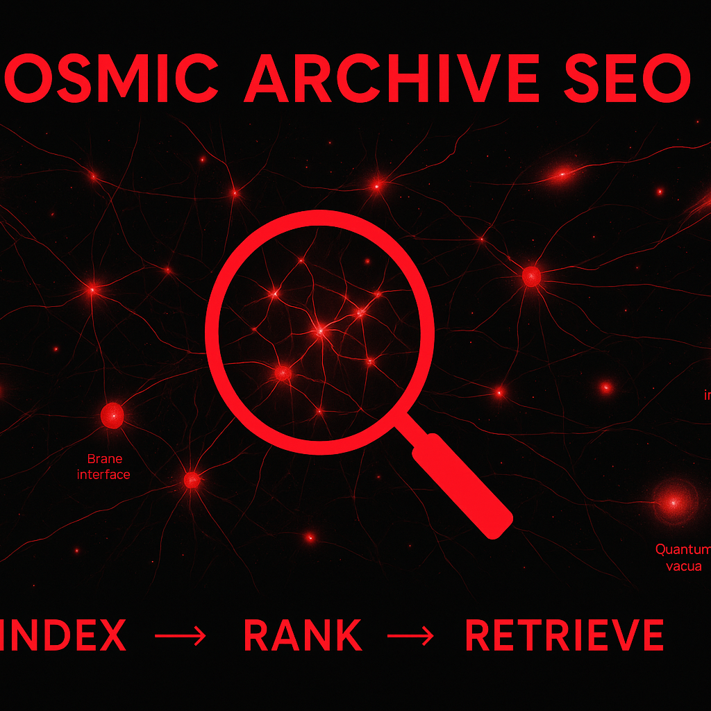 Transposed to the cosmic/interdimensional domain, the “searchable” becomes everything; but the ranking problem becomes more intricate: you’re not just fighting for page 1, you’re fighting for slice α of reality n. The metrics expand: quantum coherence, signal-latency, dimensional depth, entropy signature become your “keywords” and “links”.