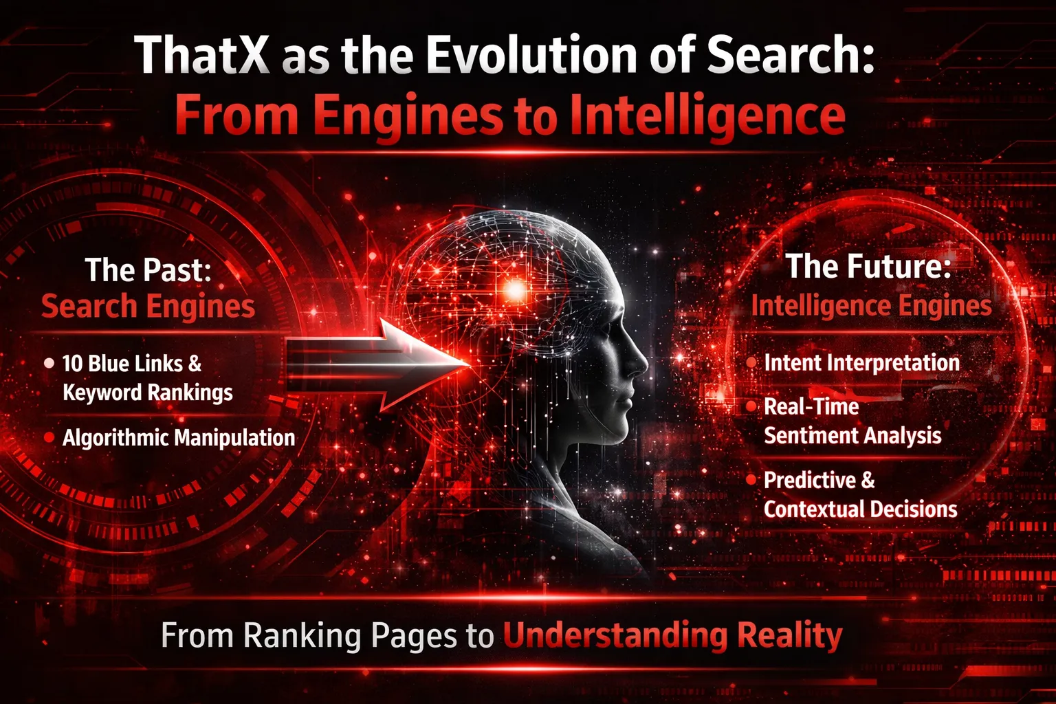 ThatX moves beyond information retrieval into outcome optimization. Instead of asking, “Which page best matches this query?”, ThatX asks, “What outcome best serves the user’s intent, context, and long-term value?”