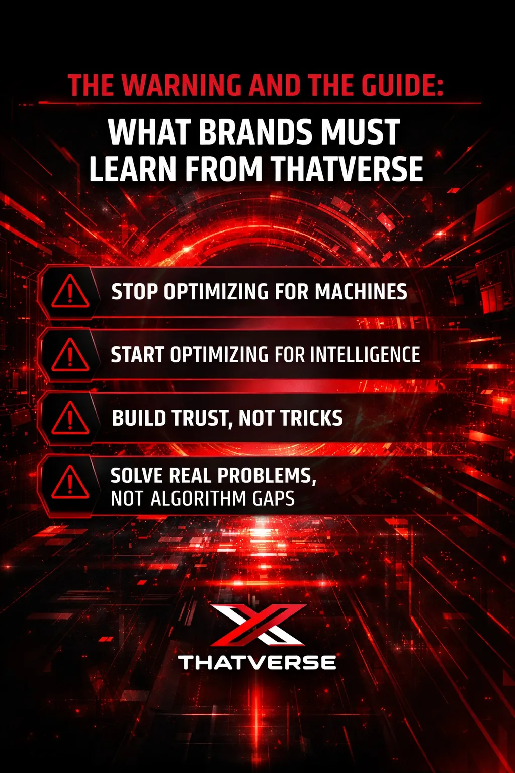 ThatVerse is not just a futuristic vision—it is both a warning and a guide for brands navigating the present. The warning is clear: the era of optimizing for machines is ending. The guide is equally clear: the era of optimizing for intelligence has already begun.