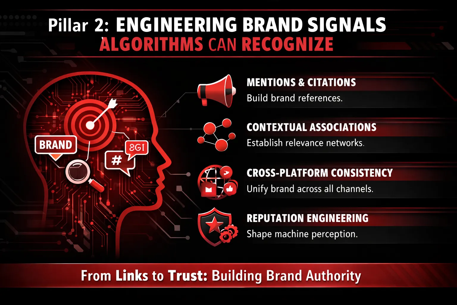 What reputable entities mention you, cite you, collaborate with you, or appear in the same context as you? Algorithms infer trust through relational credibility.