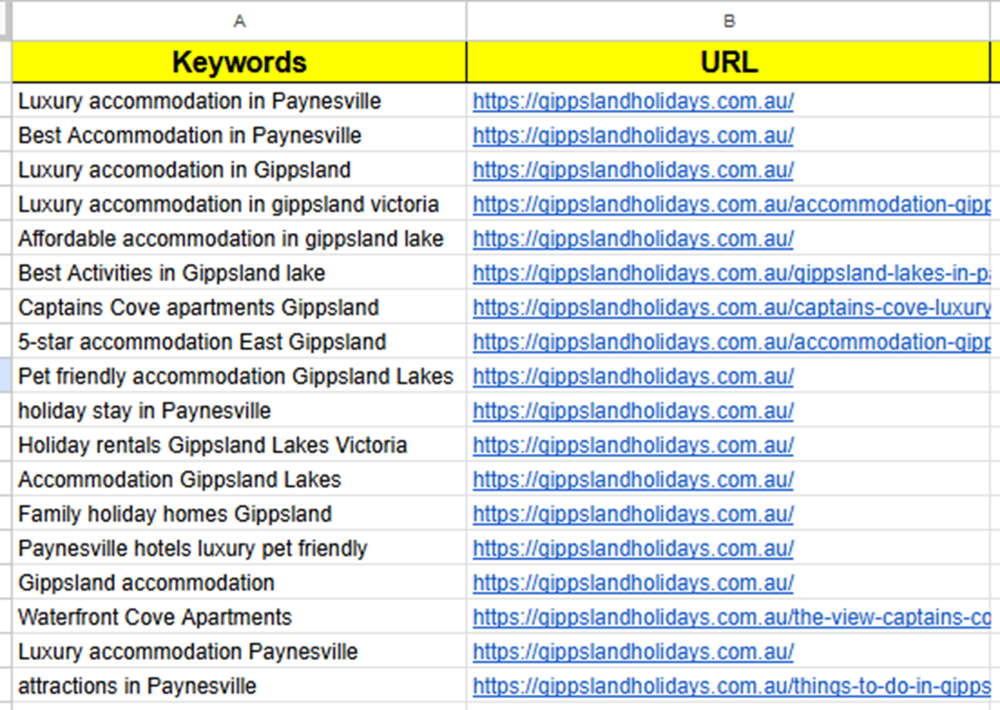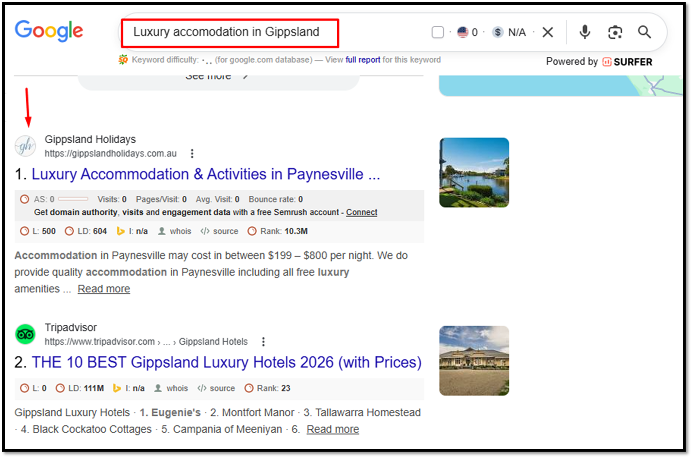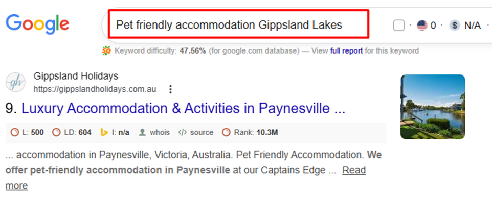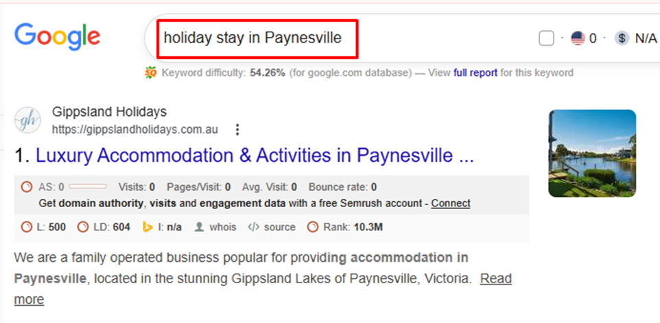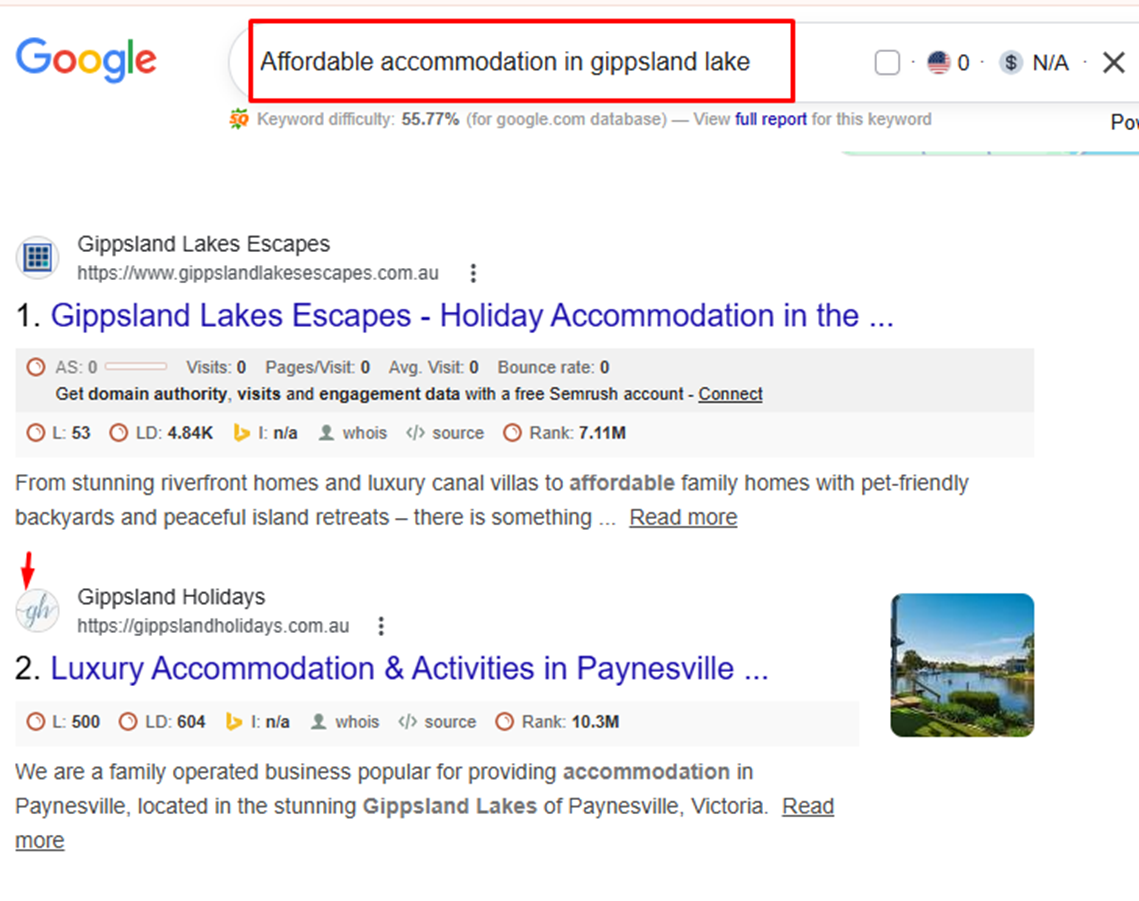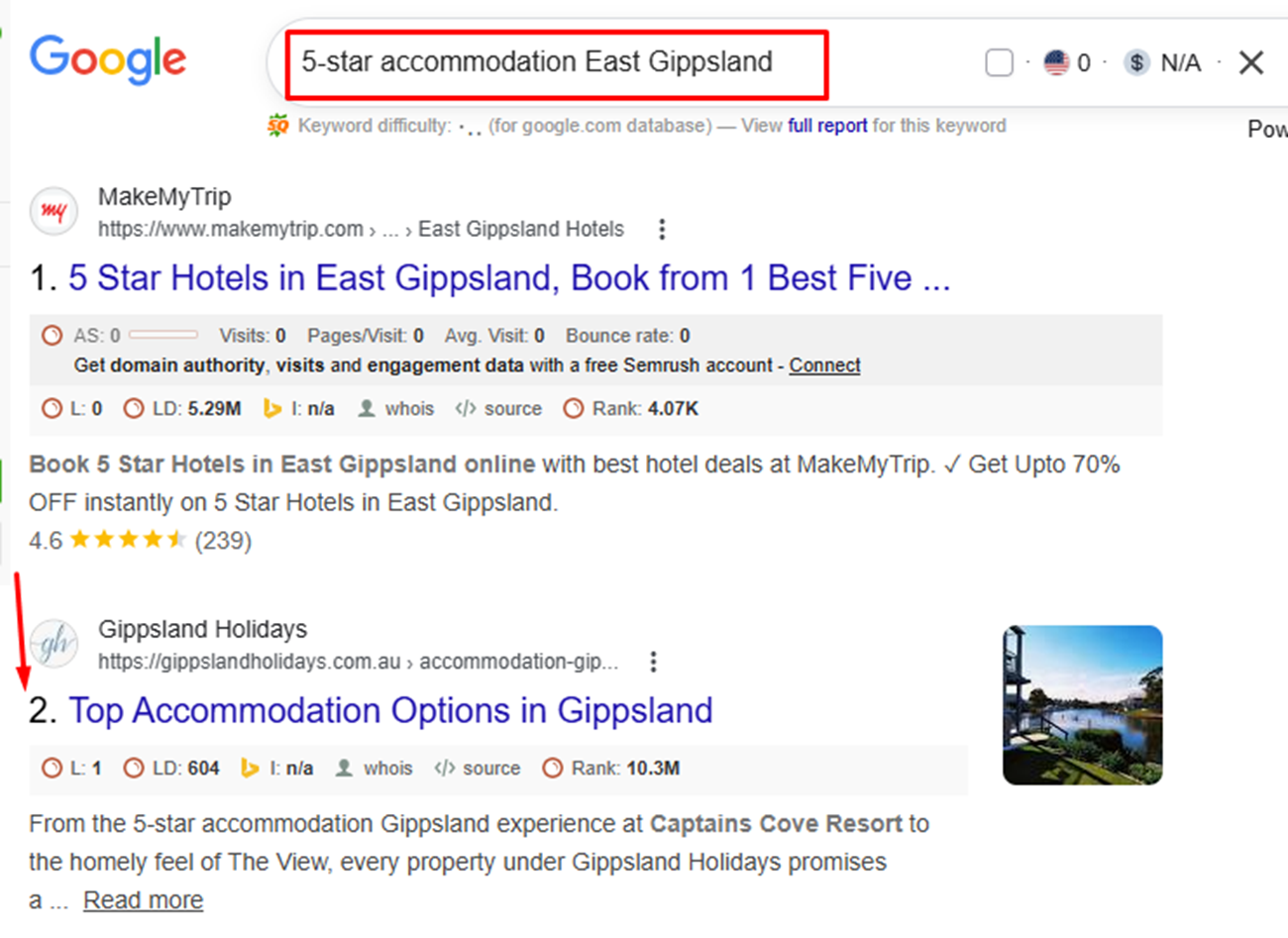 Targeting high-intent keywords played a crucial role in attracting the right audience. Users searching for “Luxury accommodation in Gippsland” are more likely to convert compared to generic travel queries.