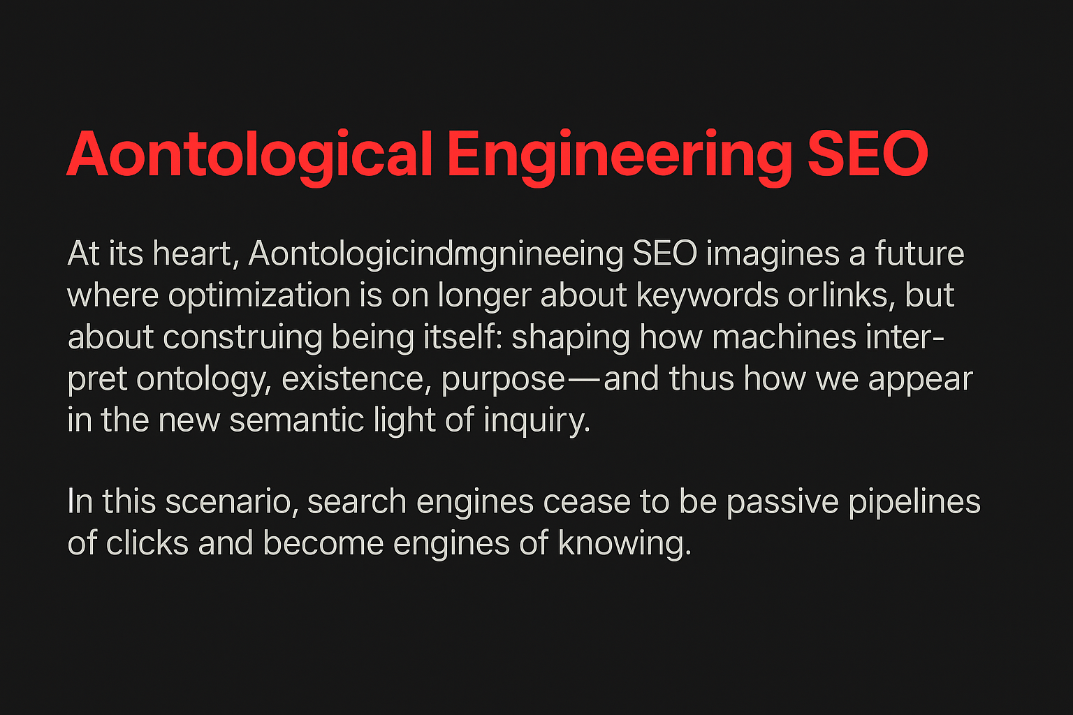 Imagine a future search engine that, instead of returning ten blue links, yields a stripped-back sequence of “resonance maps” where content is sorted by its ontological contribution. In that world, the publishers who succeed are those who authored content that didn’t just inform, but integrated: merged ontology + existence + purpose.