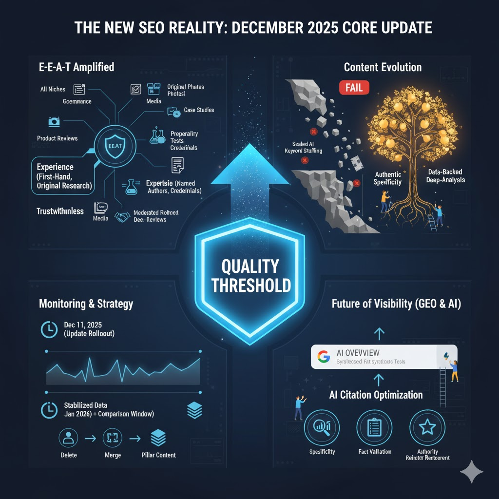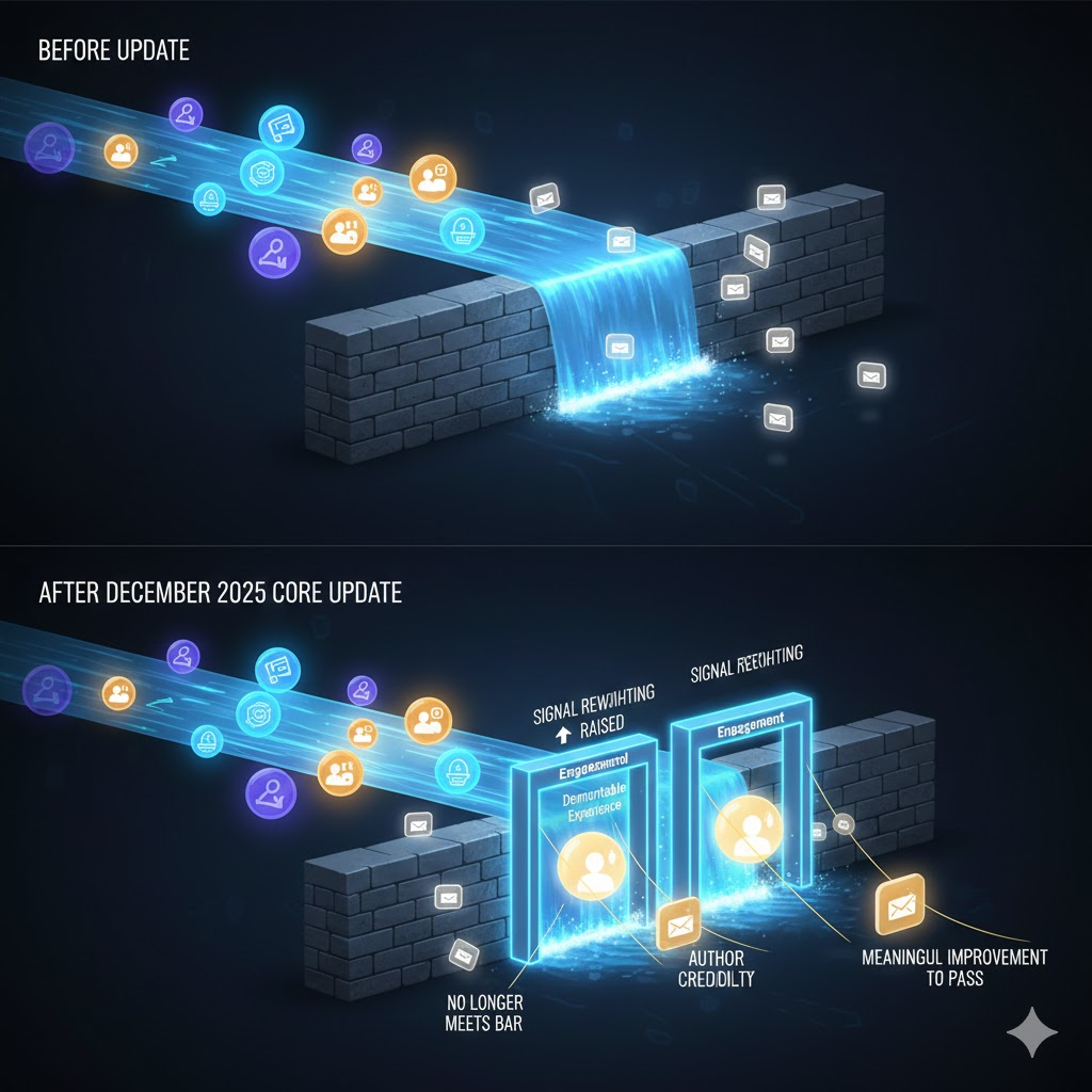The December 2025 Broad Core Update marks a clear turning point in how Google evaluates and ranks content, not because it introduces new rules, but because it decisively raises the minimum quality threshold required to compete. While officially described as a “regular” update, its timing and impact reveal a deeper recalibration that builds on the cumulative changes rolled out throughout 2025, particularly the August Spam Update and the full integration of the Helpful Content System into core ranking logic. Together, these shifts signal Google’s move away from tolerance for content that merely appears comprehensive toward a stronger preference for content that demonstrates real-world experience, expert insight, and genuine user satisfaction. Sites that previously relied on keyword coverage, scaled content production, or residual authority from past tactics are now finding those advantages eroded, as Google becomes more effective at distinguishing between surface-level information and content that truly solves a user’s problem.