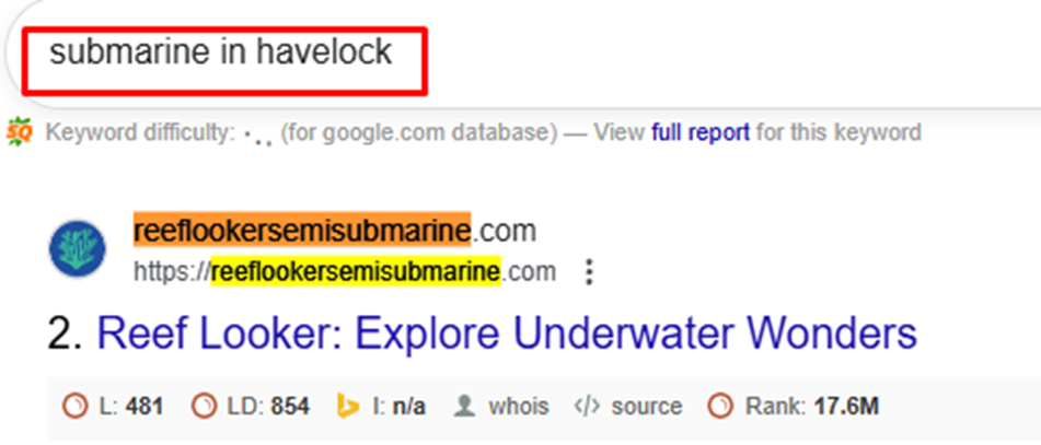 • Weak visibility for location-specific queries, like a submarine ride in Havelock