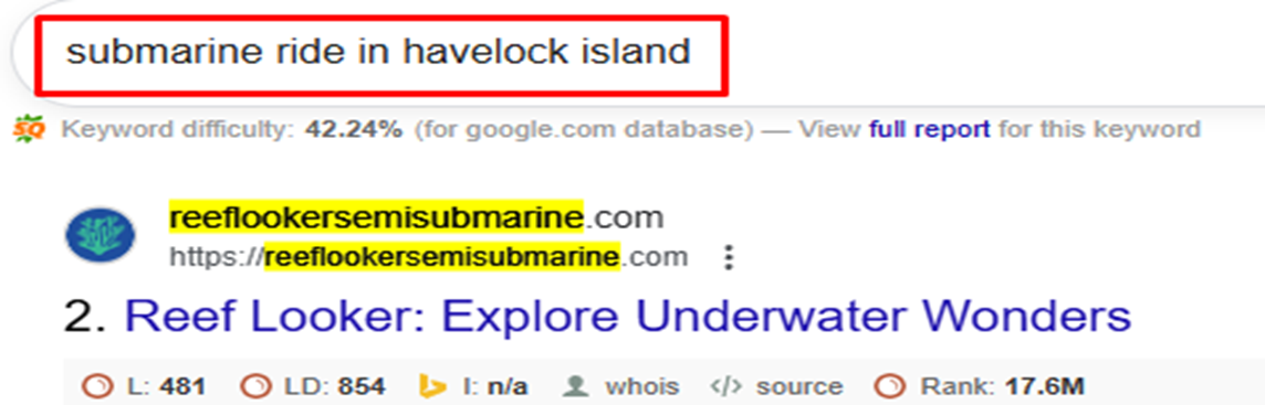 This shift indicates that search systems no longer treat the site as generic travel content. Instead, they recognized it as a relevant entity within the underwater experience ecosystem of Andaman.
