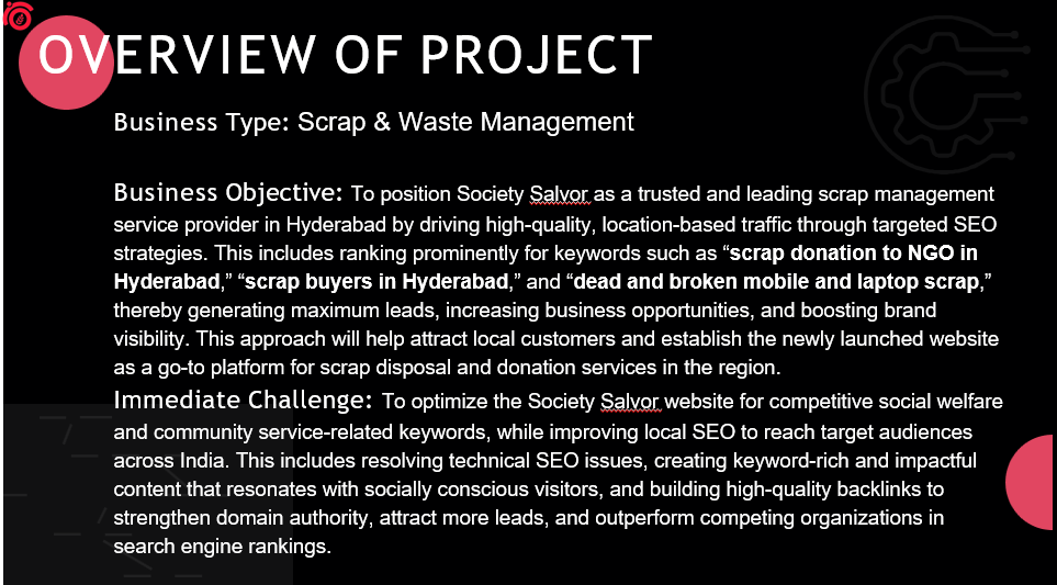 Society Salvor is a leading scrap and waste management organization based in Hyderabad. Their mission extends beyond simple recycling—they strive to create a sustainable ecosystem where scrap is collected responsibly, reused, and donated to NGOs or charitable initiatives. Over the years, Society Salvor has earned a reputation for reliability, trustworthiness, and social impact. Yet, despite their strong local presence, they faced a major challenge in the digital and generative AI space.