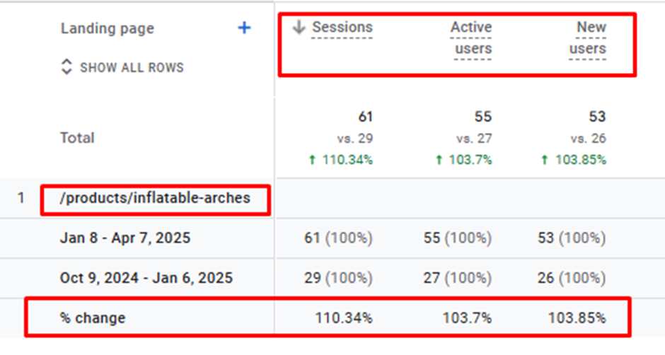 A similar pattern emerged for the Inflatable Arches category page. This confirms that the results were not isolated or coincidental.