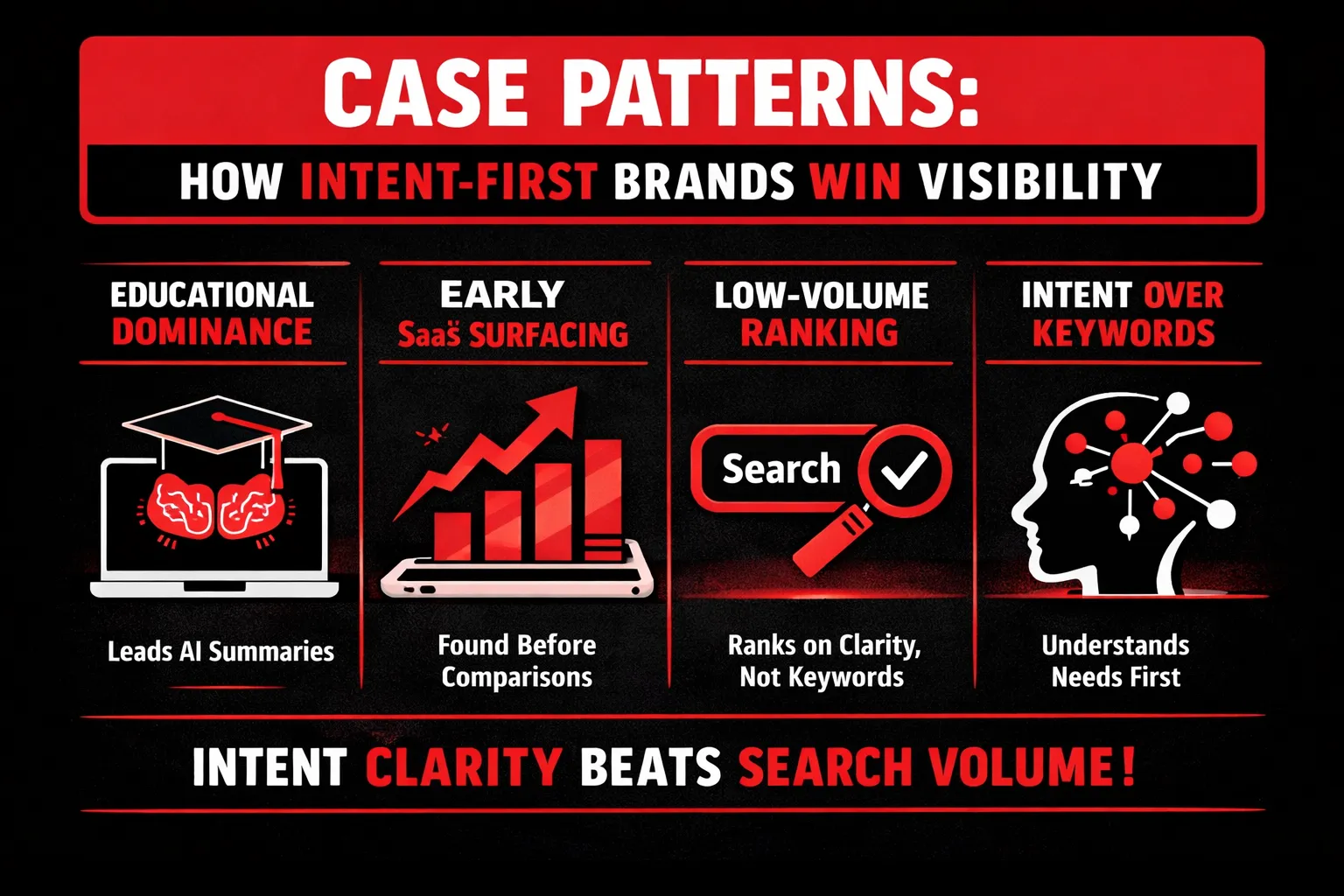 What’s most revealing about AI-driven visibility is that the biggest winners often aren’t the loudest brands, the most aggressively optimized pages, or the ones chasing the highest-volume keywords. Instead, they follow a set of repeatable intent-first patterns that AI systems consistently reward. Below are the most observable ones.