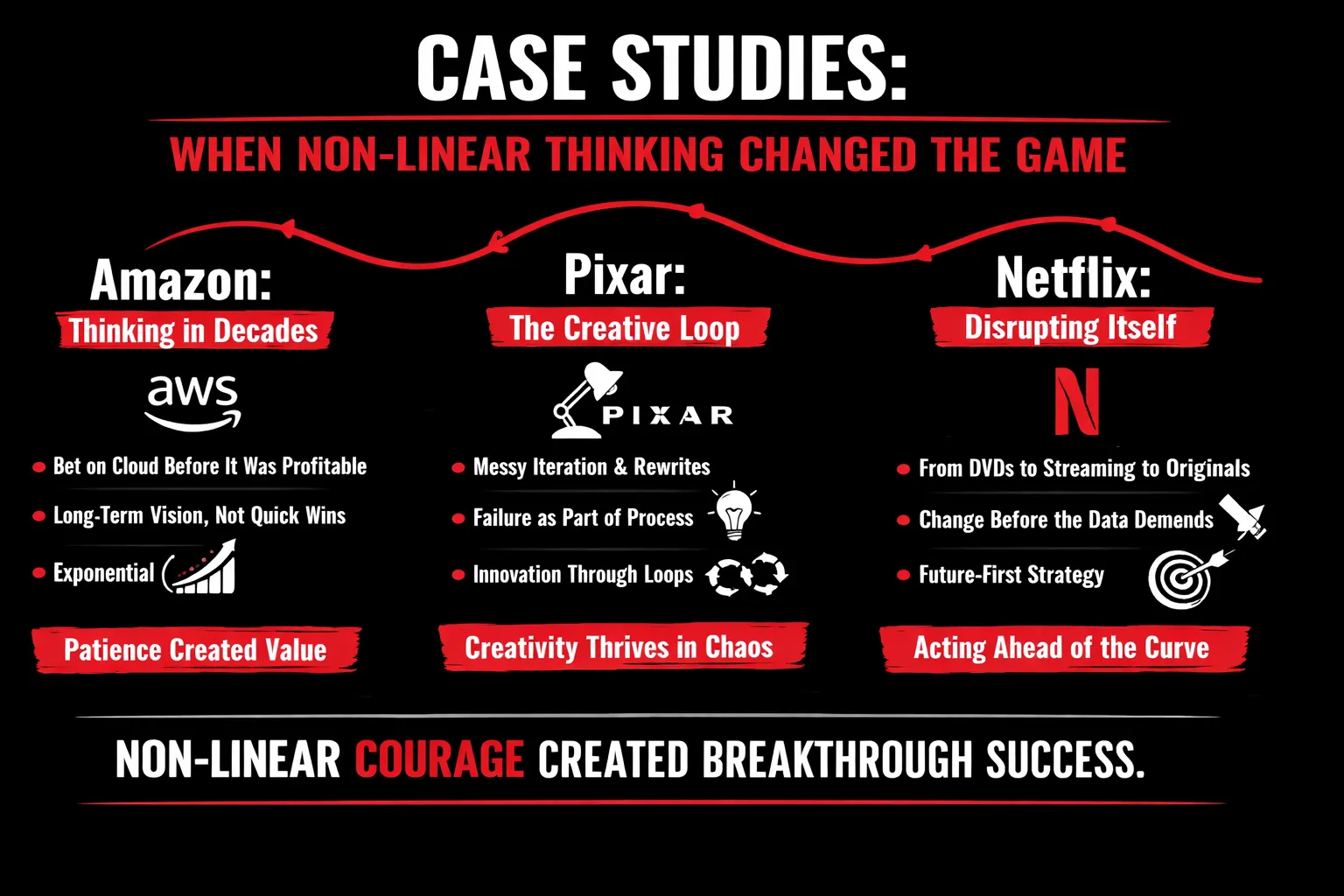 Innovation often sounds abstract until you see it play out in the real world. The most transformative companies didn’t win because they had better budgets or smarter people—they won because they rejected linear timelines when the future demanded something bolder. The following cases show how non-linear thinking, though uncomfortable and uncertain, created exponential value.