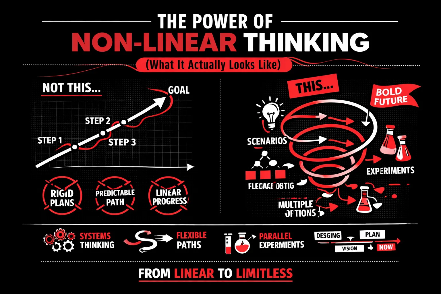 Non-linear thinking, at its core, is the courage to treat the future as something you can design—not something you can only predict. And in a world where change doesn’t arrive on schedule, that courage becomes the real competitive edge.
