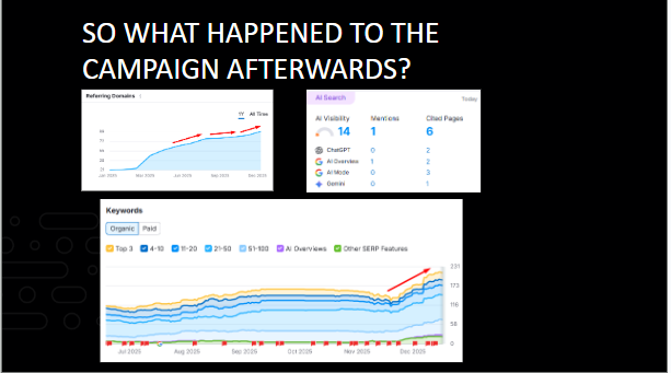 Together, these elements acted as ranking multipliers, amplifying the impact of content, intent alignment, and semantic authority.