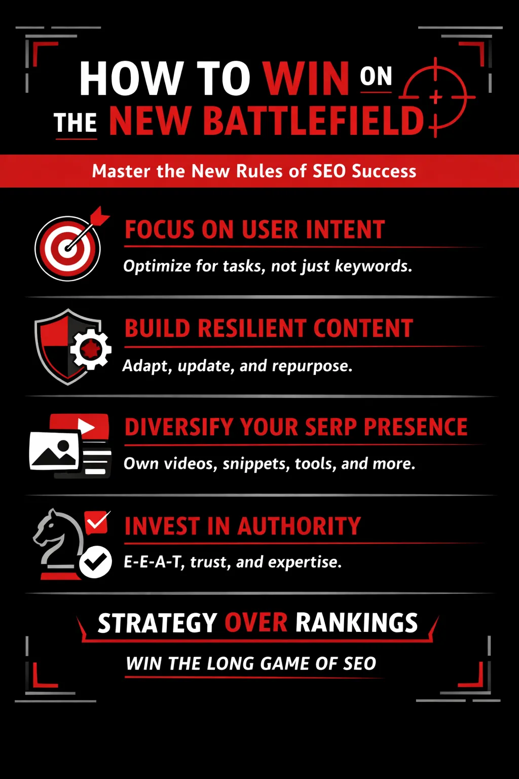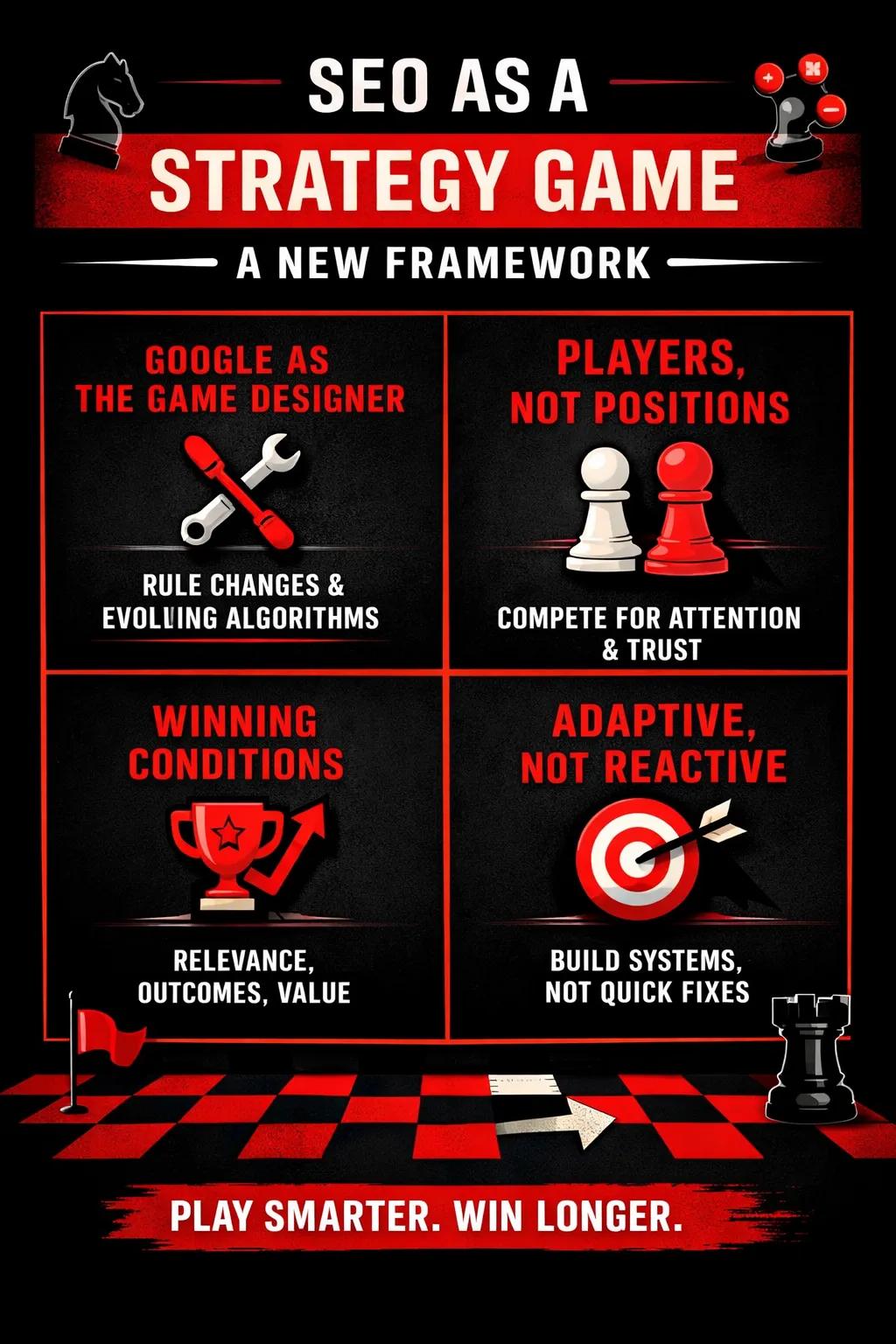 To survive (and win) in modern search, SEO must be viewed not as a checklist—but as a strategy game.