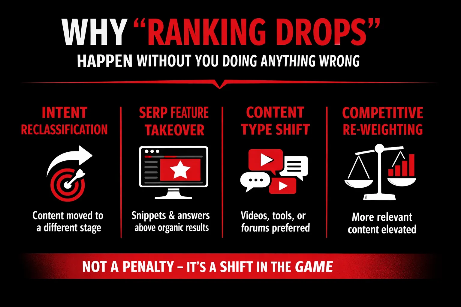 One of the most damaging assumptions in SEO is that a drop in rankings automatically means something broke. In reality, many ranking declines occur even when your content quality, links, and technical SEO remain unchanged. The reason is simple: Google isn’t judging your content in isolation anymore. It’s constantly reorganizing the search landscape to better match user intent, format preferences, and usefulness at scale.