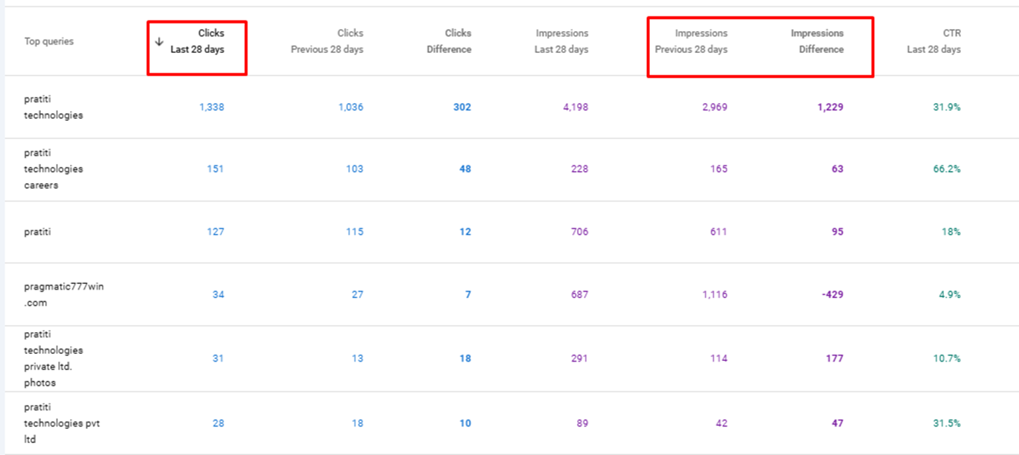 Clicks & Impression Improvement in Relevant Queries