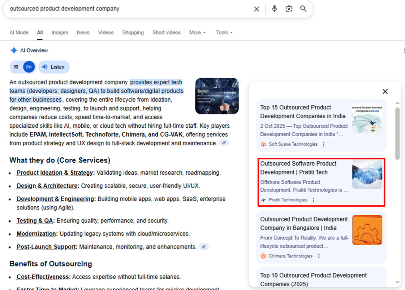 AEO ensured that Pratiti’s content appeared in AI-generated responses and featured snippets.
