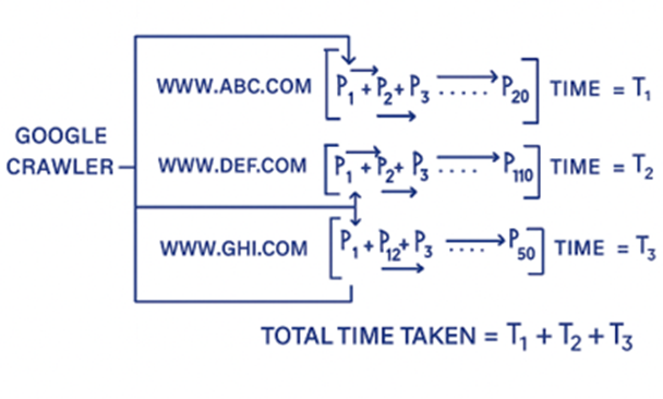 So, the crawling and indexing procedure will be done for all websites in parallel or simultaneously at the same time (t)