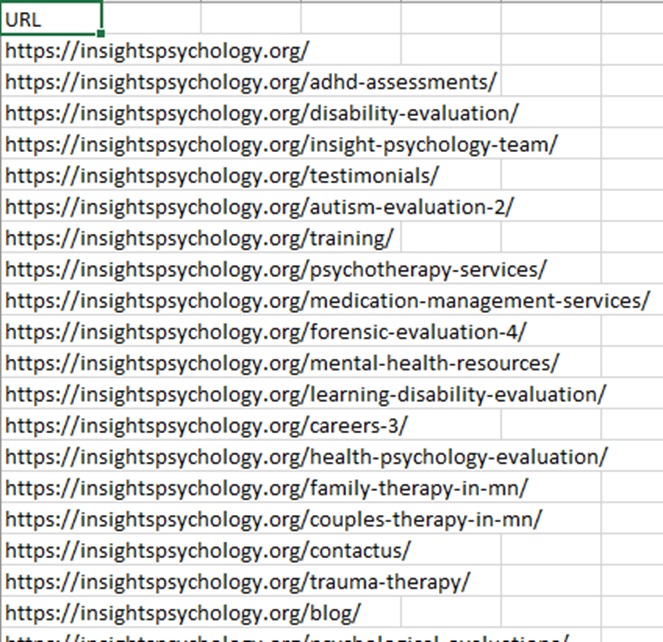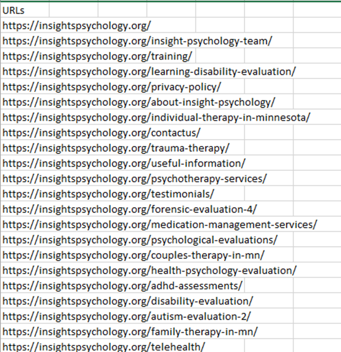 Step 1: We need to provide the Excel sheet containing the whole website pages(Only important HTML pages)