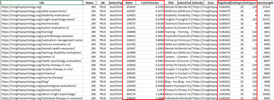 - Internal_Links → Source → Target mapping of your site’s internal structure.