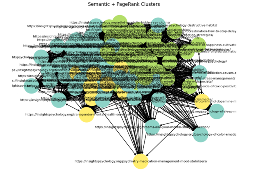 - Smarter Internal Linking Strategy – Instead of linking purely based on authority, the semantic clustering layer ensures that links also reinforce topical relevance, strengthening site architecture and topical authority in the eyes of search engines.