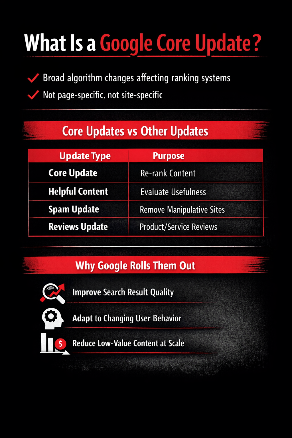 If you run a website long enough, a Google Core Update will eventually affect you. Sometimes positively, sometimes painfully. To understand why traffic changes happen, it helps to clearly understand what a core update actually is and what it is not.