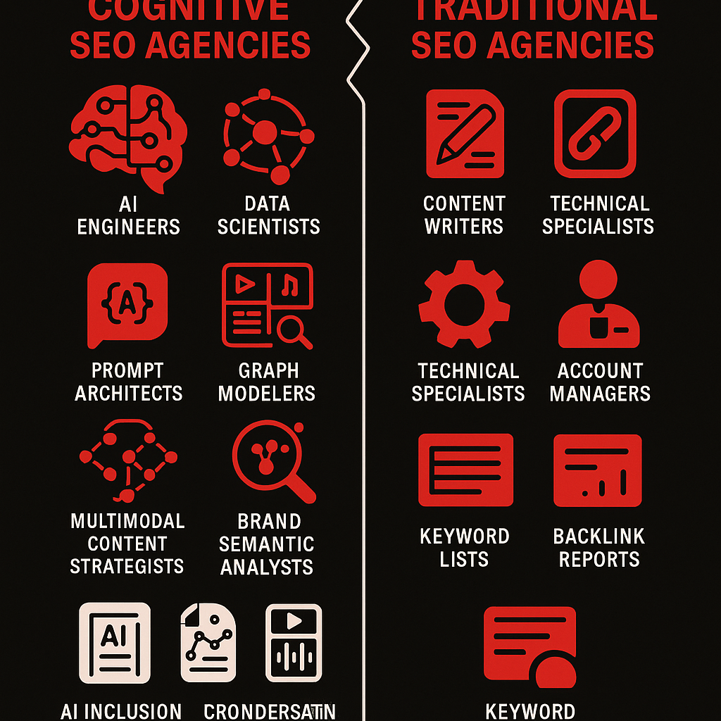 The Cognitive Web has changed the ground beneath their feet. Search today requires people who can understand how modern AI systems work. It demands talent such as data scientists, machine learning specialists, and engineers who can look at content the same way an algorithm does. The new landscape requires people who can work with embeddings, model tuning, entity structures, and the technical language of AI systems.