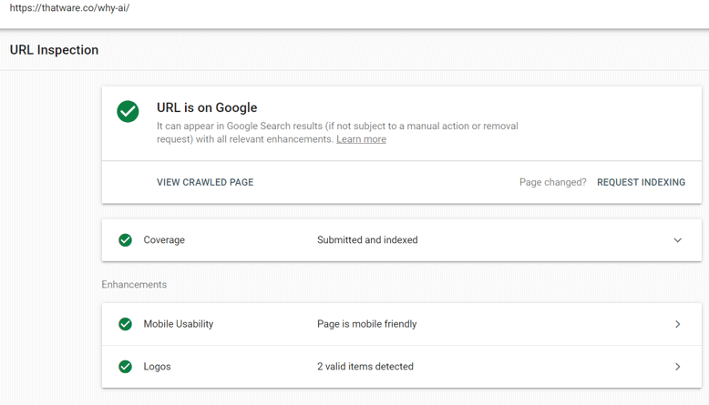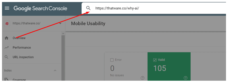 Step 2: Once you press enter you will see something like this as shown on the below screenshot. Make sure “Coverage” and “Mobile Usability” is ticked green. If not, then click them further to see the issues.