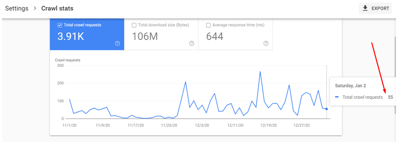 As a result of all our efforts, our latest daily crawl stats is 155, as shown in the screenshot below: