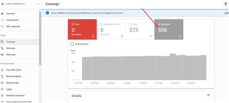 7. Excluded pages as seen from Google search console (check the screenshot below)