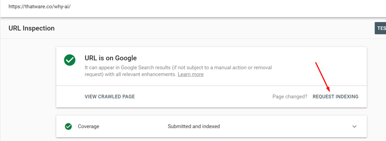 Step 3: Click on “Request Indexing” and then Google will take the latest index feed of your website within 48 hours max. This will solve the mobile issues once and for all.
