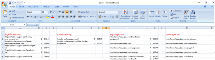 Arranging Data in the Spreadsheets: (According to their PageRank and Modularity)