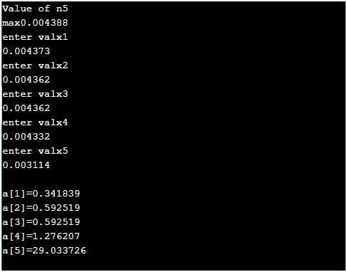 Output of the relative distance in a[i] ( i= 1,2,3,4,5 ):