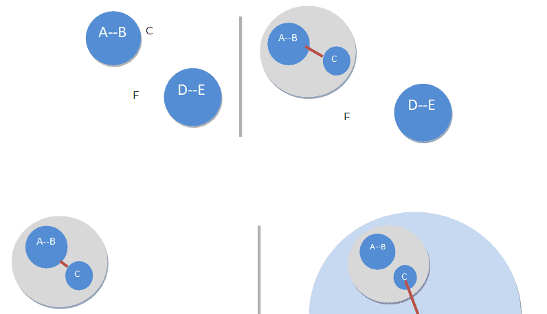 X- Both side arrow connectivity between A and C means, both nodes will pass PR and MD to each other to maintain link equity.