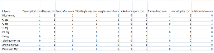 Although we used our program to judge each and every keyword in meta description, title tag, alt text, i tag, p tag etc. against multiple competitors to check what kind of matches (Exact match, phrase match, search term match) are present in the content, this affect the ranking in terms of keyword and search query hit by users. We also check the pearson value and spearman’s ranking value to analyze how the main site is performing compare to its competitor .