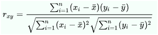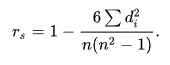 Where n is the sample size, xi and yi are the individual sample points indexed with i,Spearsman: