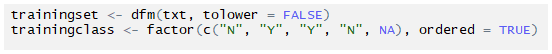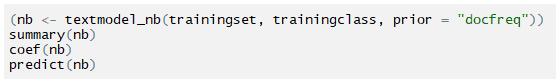 textmodel_nb: Naive Bayes classifier for texts, a multinomial or Bernoulli Naive Bayes model, given a dfm and some training labels.