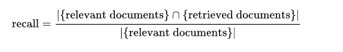 In information retrieval, recall is the fraction of the relevant documents that are successfully retrieved.